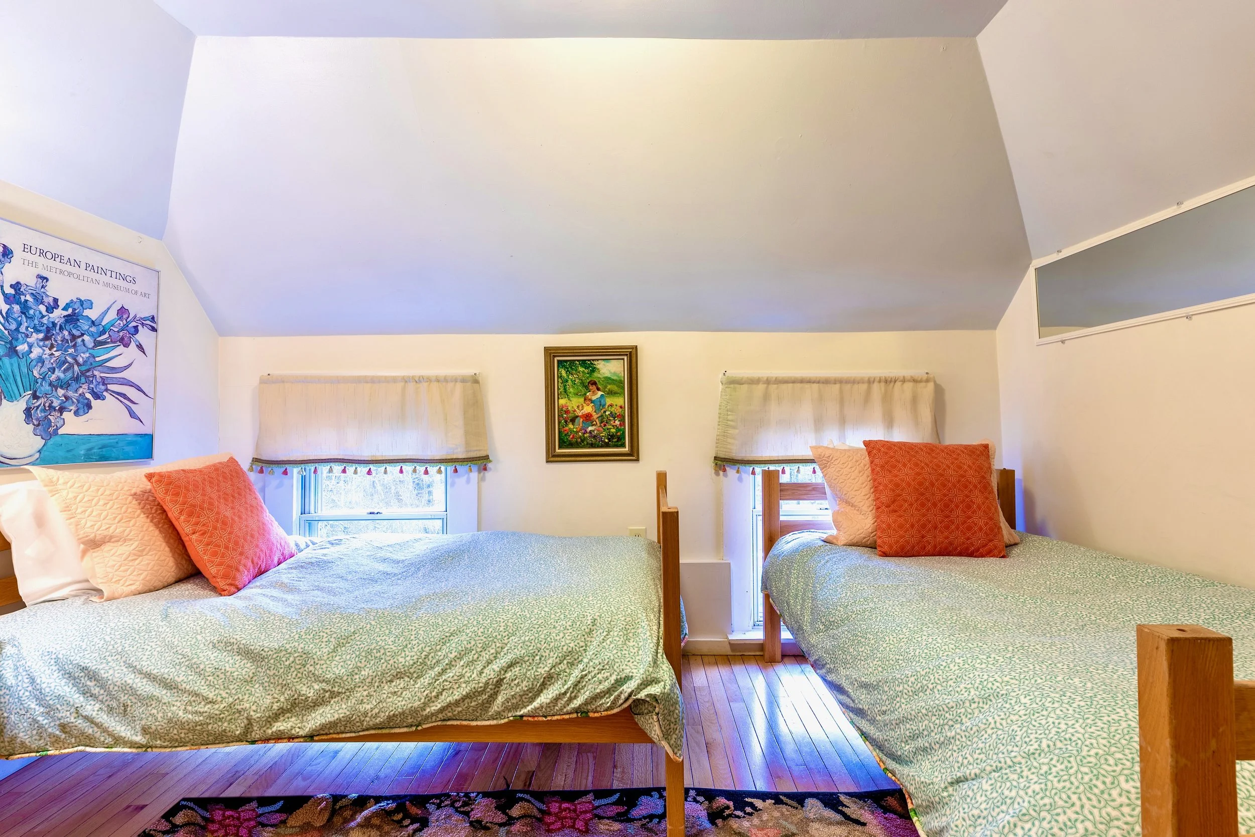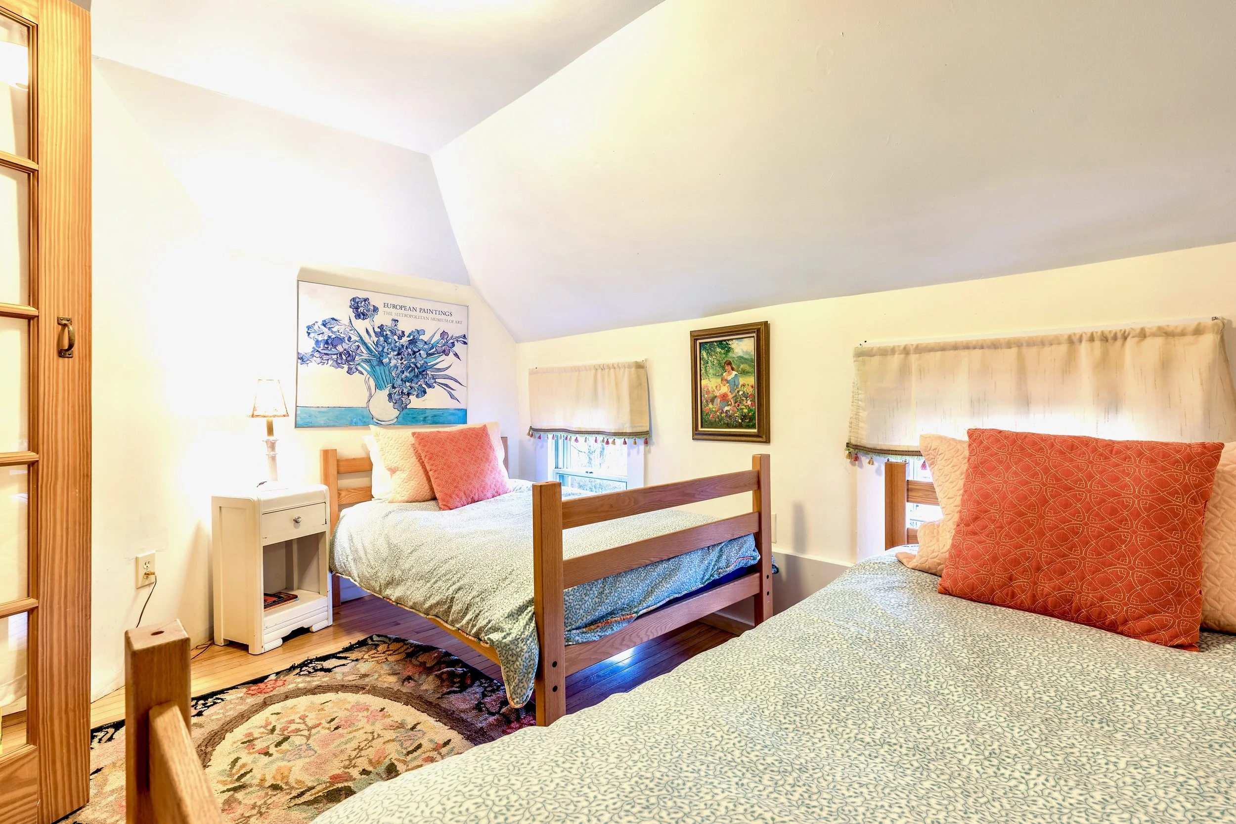 This room now has 2 twin beds. The bathroom is shared in the hall with room 12 and 13. 3rd floor.