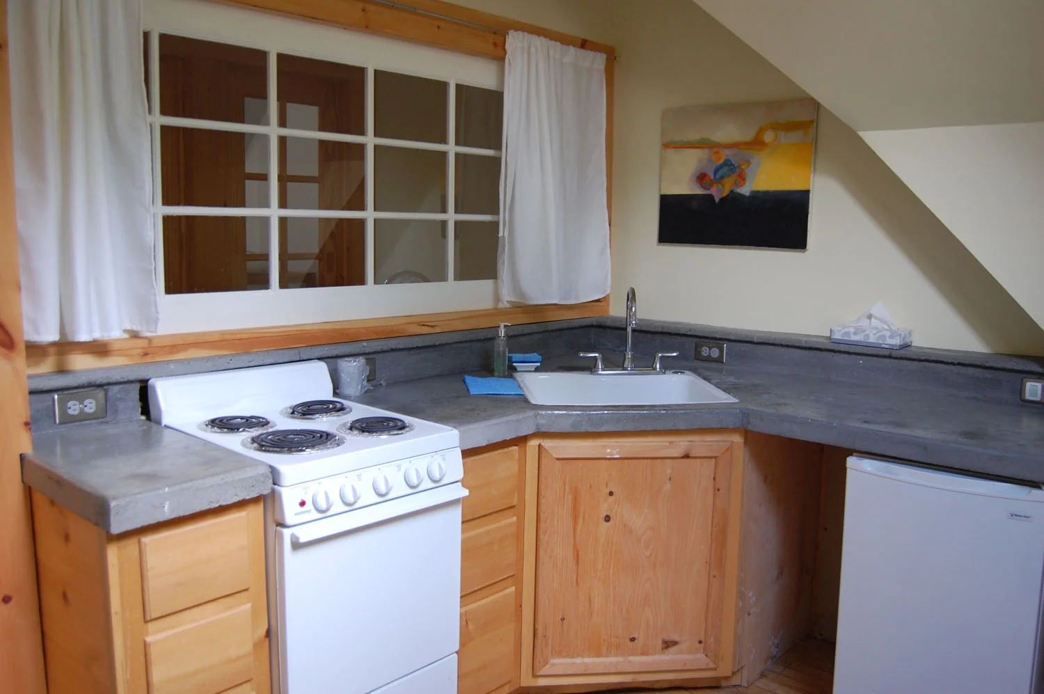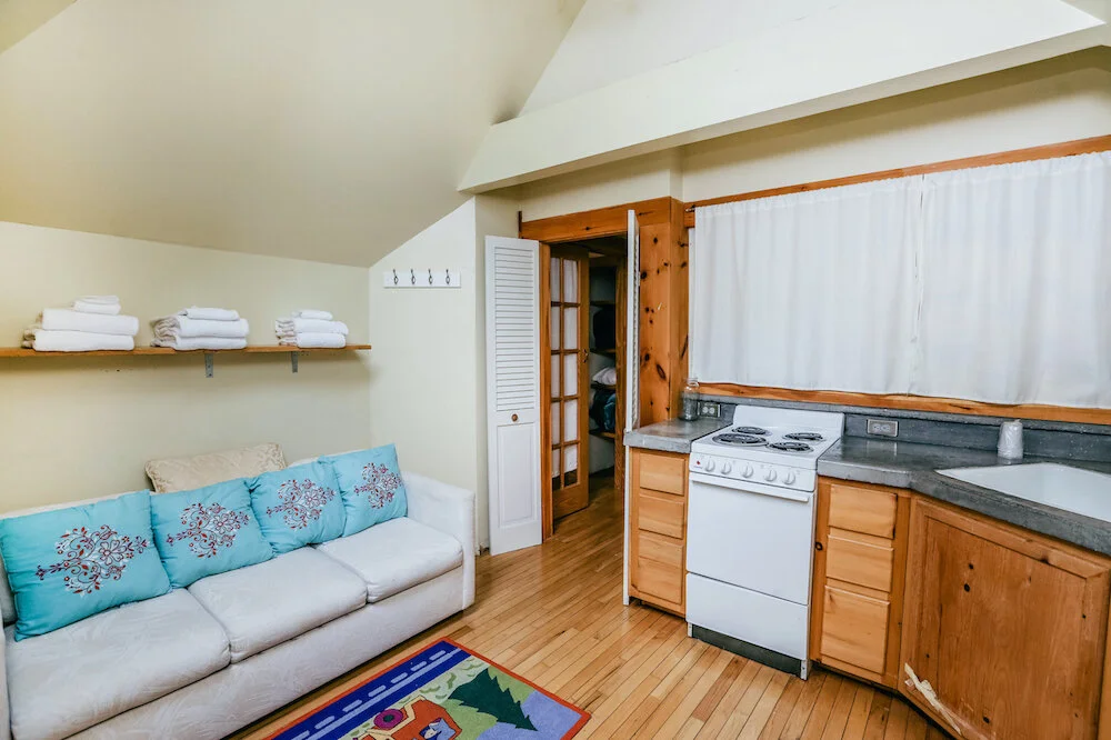 This small kitchen has a pull out sofa.It shares bathroom in the hall with rooms 11 and 13. 3rd floor.