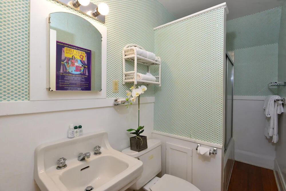 Innkeeper Melissa Levis felt like Eloise at The Plaza when she lived in this guest room for a year during her transition from New York City songwriter to Vermont family Innkeeper. She loved waking up to the yellow floral wallpaper and climbing into the high four poster bed. The bejeweled pink pillows are a tribute to Melissa's prior life when The New York Post dubbed her "The Pied Piper in Pink" and she sang to thousands of children a year leading her band, Moey's Music Party. Queen four poster bed, lovely views of the estate. Ensuite bathroom with bathtub/shower. 3rd floor. 230 square feet.